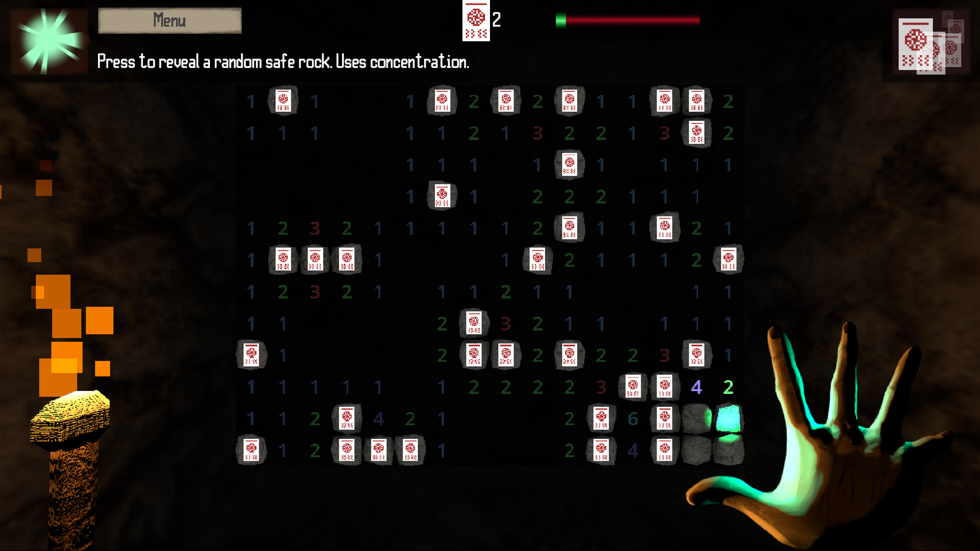 A minesweeper game where you can use your magical abilities to deal with pesky odds. Save your concentration resource to speed up the process, or get rid of tiebreakers. Mine your way through without disturbing the spirits.